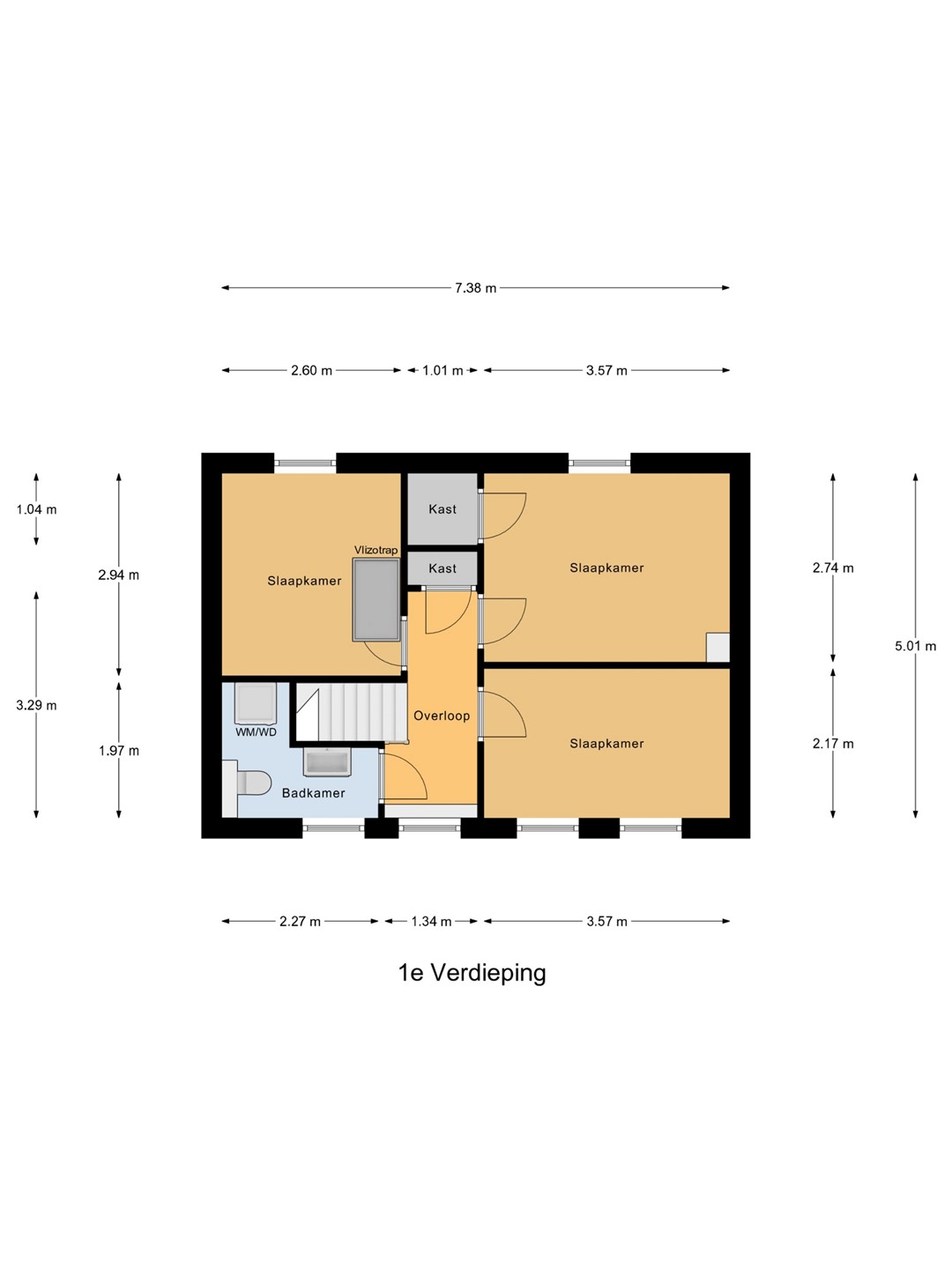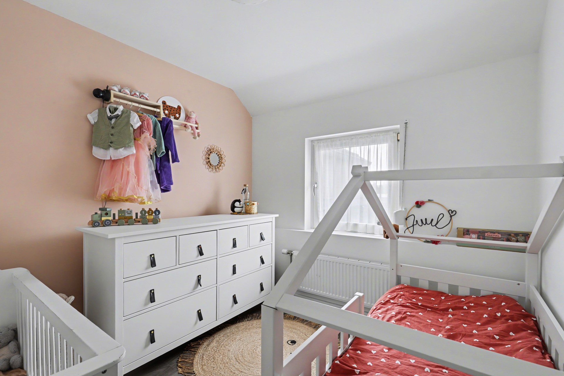 De eerste verdieping biedt een comfortabele en sfeervolle slaapverdieping met drie nette slaapkamers. Alle kamers zijn voorzien van een moderne laminaatvloer en strak afgewerkte wanden, wat zorgt voor een frisse en verzorgde uitstraling. De ruime hoofdslaapkamer is gelegen aan de rustige achterzijde van de woning, ideaal voor een goede nachtrust.