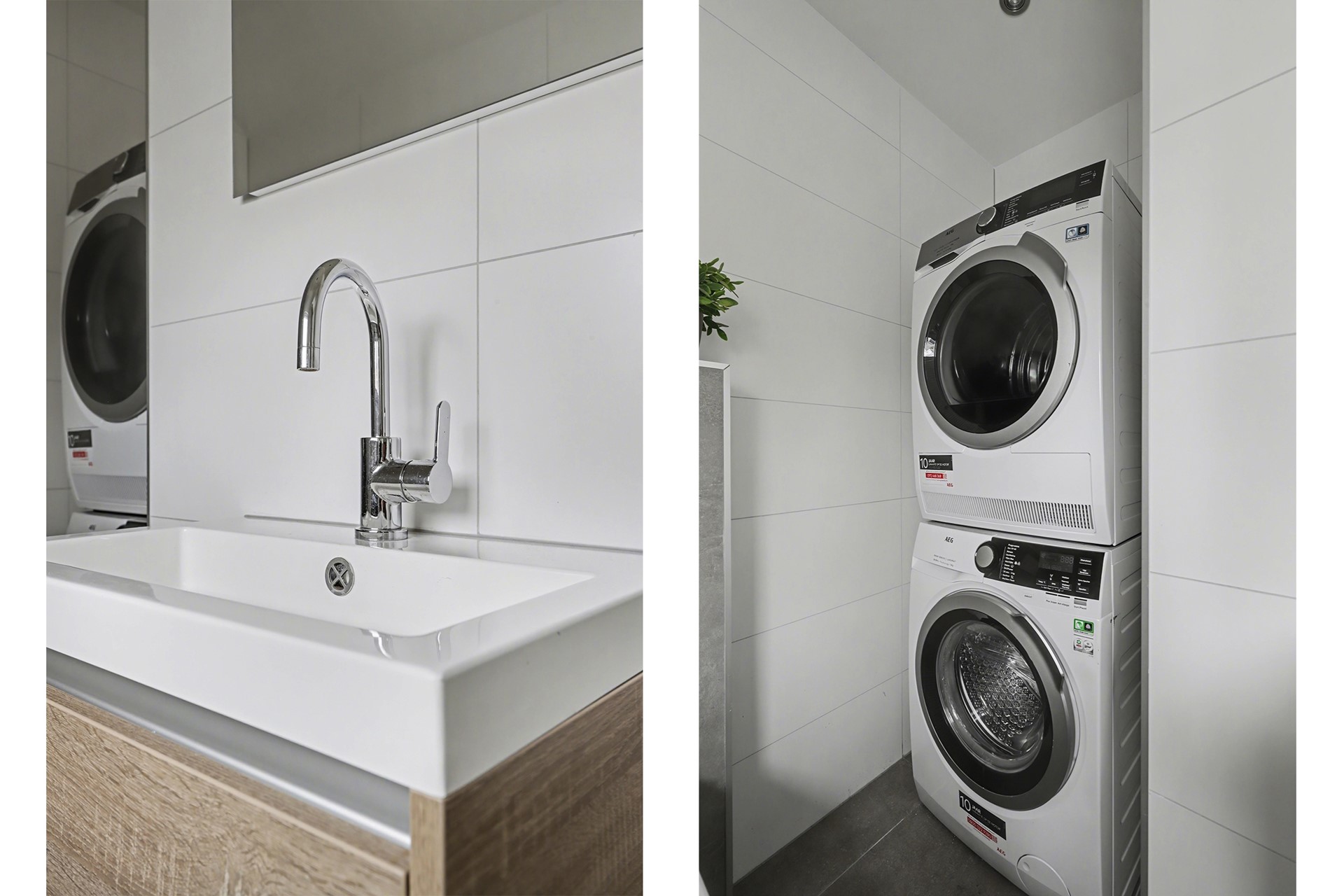 Daarnaast beschikt deze verdieping over een praktische aparte ruimte met aansluitingen voor de wasmachine en een extra toilet, wat het wooncomfort compleet maakt. Een fijne, functionele indeling waar rust en gemak samenkomen.