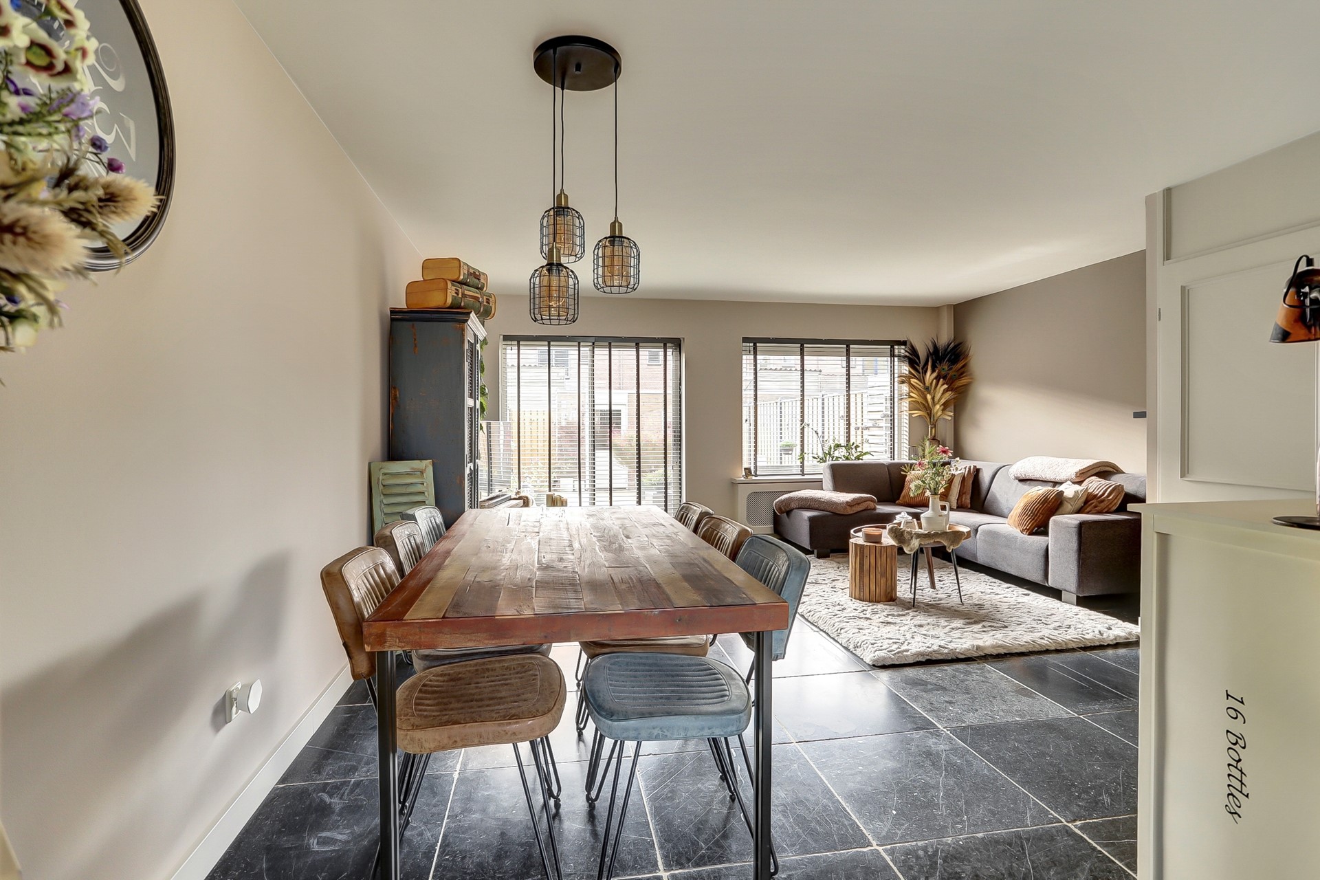 De royale woonkamer is een heerlijke plek om thuis te komen. Dankzij de grote raampartijen valt er volop daglicht binnen, waardoor de ruimte licht en uitnodigend aanvoelt. Er is meer dan genoeg plek voor een comfortabele zithoek én een ruime eethoek, perfect voor gezellige avonden met familie of vrienden. De tuindeuren zorgen voor een naadloze overgang naar de zonnige achtertuin, waardoor binnen en buiten op een natuurlijke manier in elkaar overlopen.