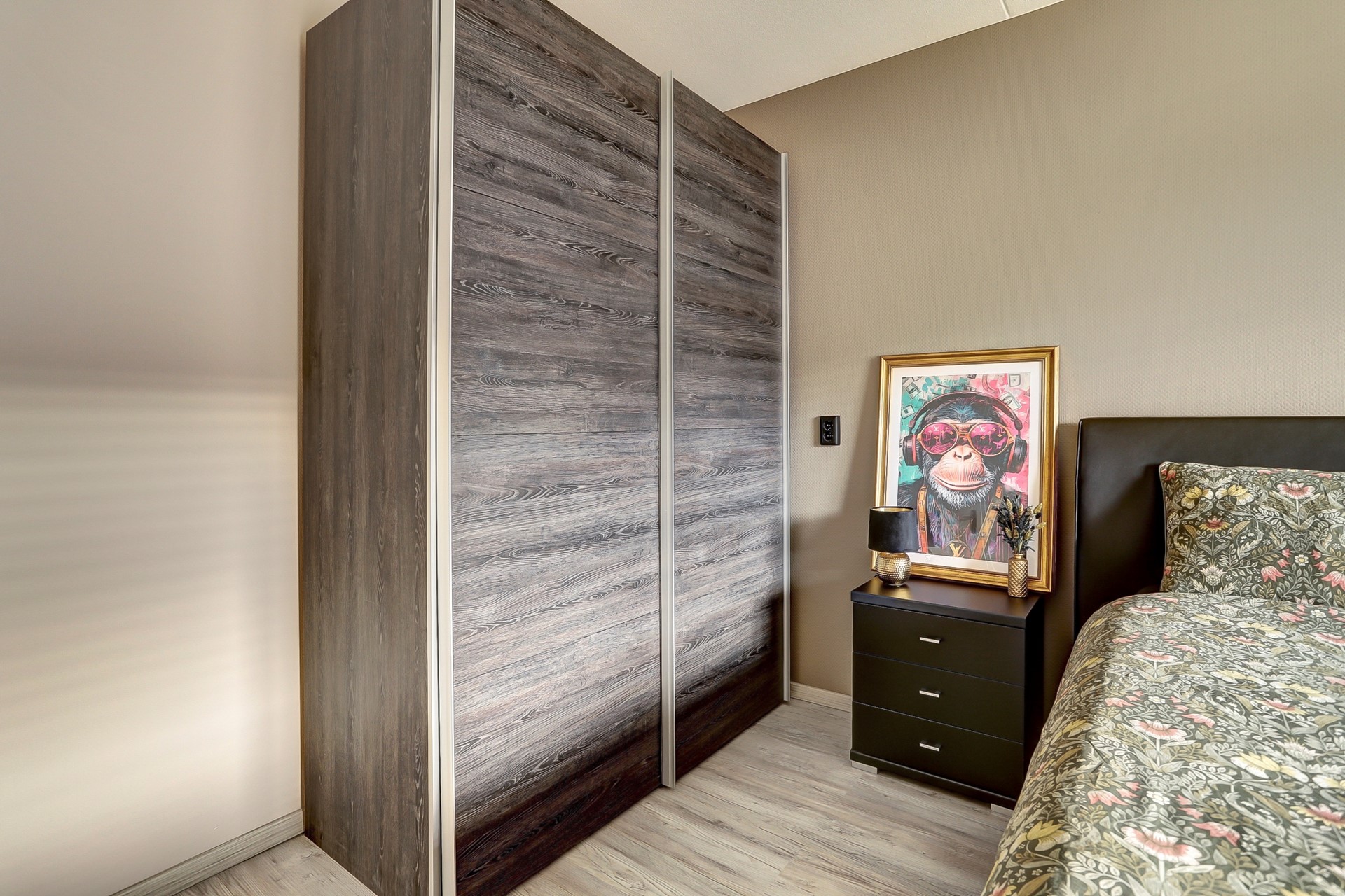 De zolderverdieping biedt verrassend veel extra ruimte. Hier vindt u de aansluitingen voor wasmachine en droger, de unit voor balansventilatie en handige bergruimte achter de knieschotten. Dankzij de afmetingen en indeling is deze verdieping uitstekend geschikt als extra slaapkamer, werkruimte of speelkamer.