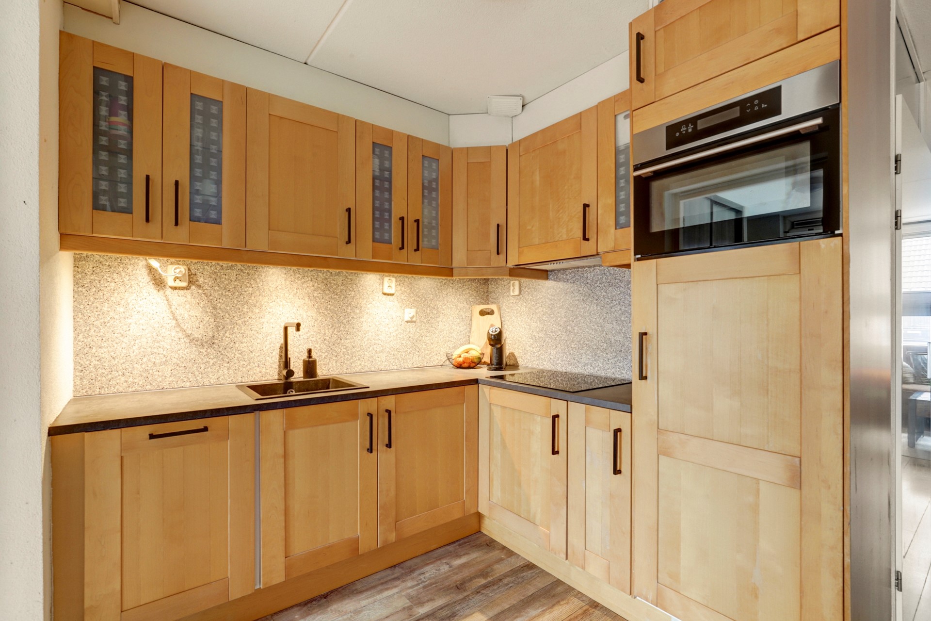 De nette keuken is uitgerust met een ruime hoekkeuken, inductiekookplaat, stijlvolle afzuigkap en combimagnetron. De ingebouwde vaatwasser maakt opruimen eenvoudig, en de ruime spoelbak en koelkast bieden voldoende ruimte voor al uw kookbenodigdheden. Dankzij de open verbinding met de woonkamer ontstaat een fijne, gezellige leefruimte. De grote ramen en directe toegang tot de tuin versterken het gevoel van ruimte en licht. Perfect voor diners, borrels of een ontspannen ochtendkoffie in de zon.