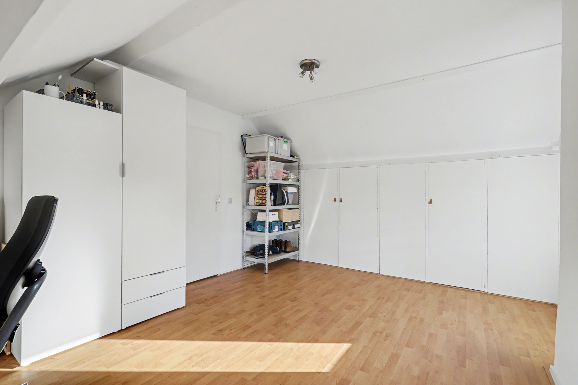 Via een vaste trap is de tweede verdieping bereikbaar. Hier bevindt zich een voorzolder met de opstelling van de CV-ketel en warmtepomp en de aansluitingen voor wasapparatuur. Daarnaast is er een ruime zolderkamer die uitstekend kan dienen als extra slaapkamer, werkruimte of hobbykamer. Ook is er praktische bergruimte aanwezig.