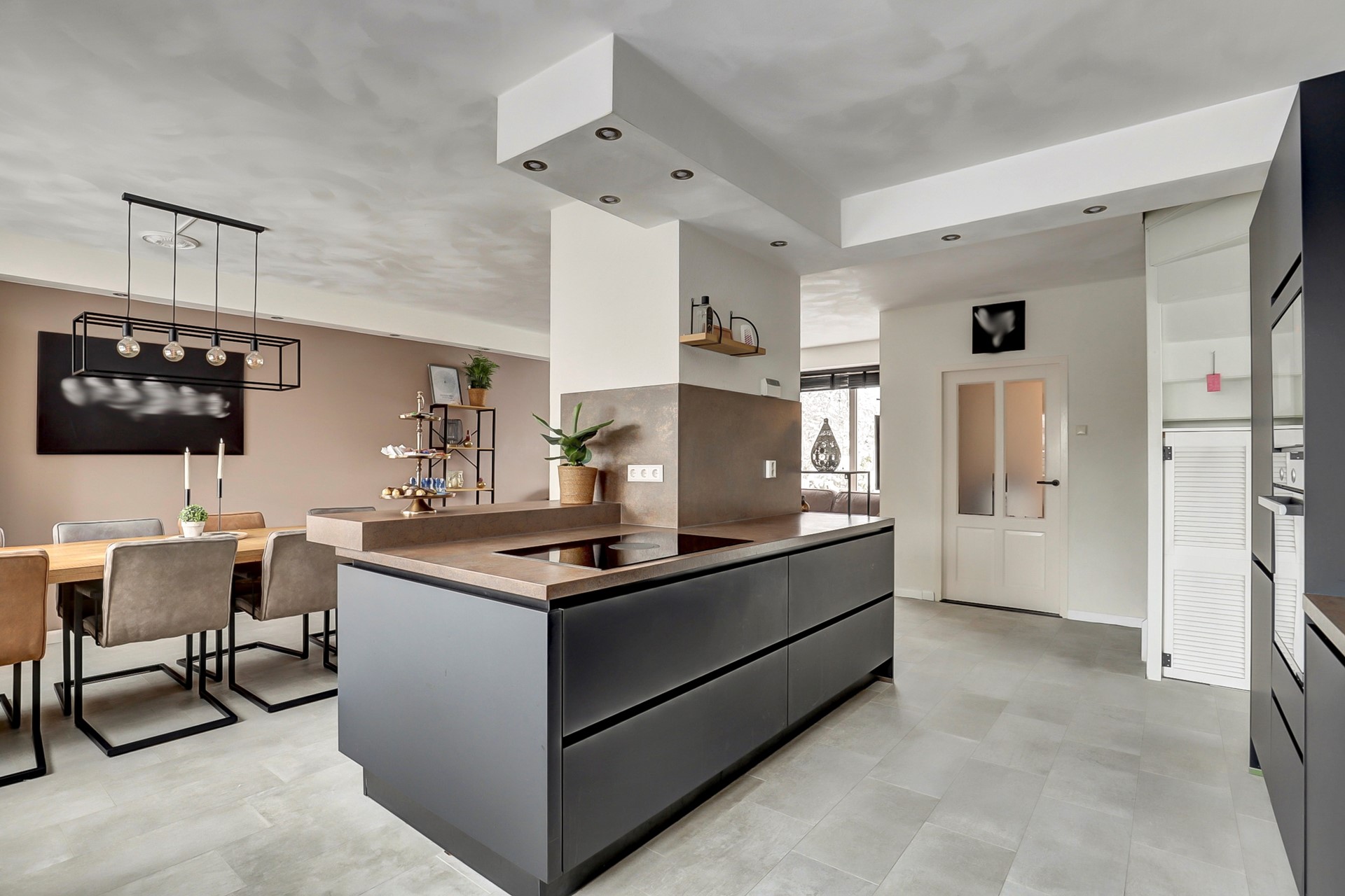 De zeer ruime woonkamer is licht en uitnodigend dankzij meerdere raampartijen en biedt volop ruimte voor een royale zithoek en een comfortabele eethoek. De open indeling zorgt voor een prettige verbinding met de royale open luxe keuken.