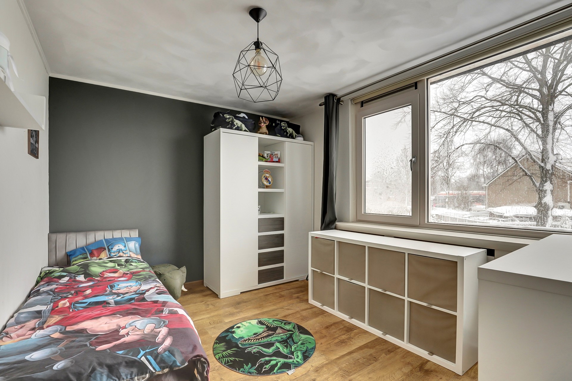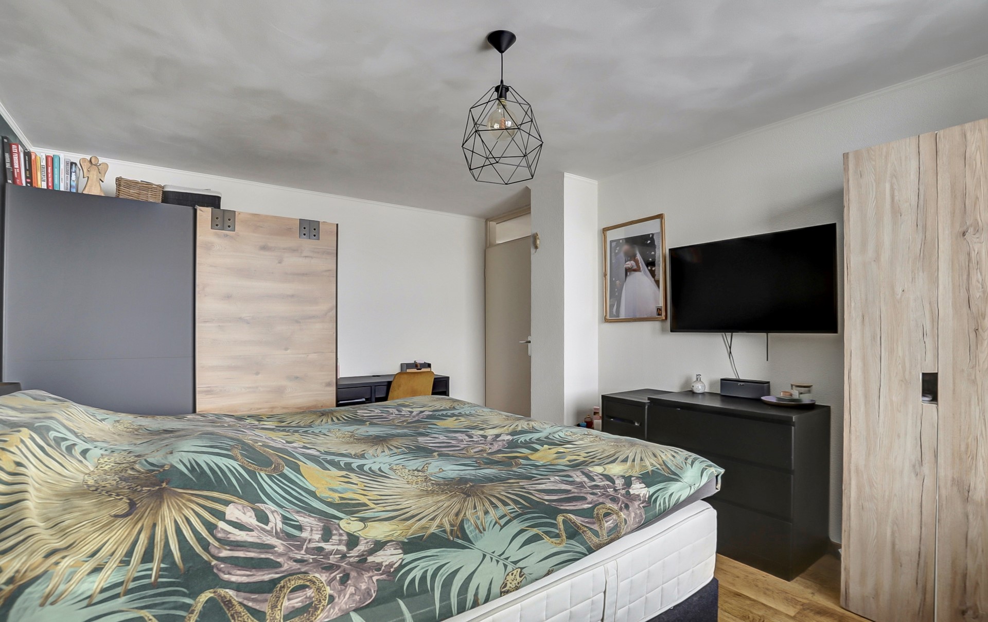 Op de eerste verdieping valt meteen op hoeveel ruimte deze woning biedt. De overloop geeft toegang tot drie bijzonder ruime slaapkamers, die elk voldoende plek bieden voor een groot bed, kasten en eventueel een bureau of zithoek. De grote ramen zorgen ook hier voor veel natuurlijk licht, wat de kamers een open en frisse uitstraling geeft.