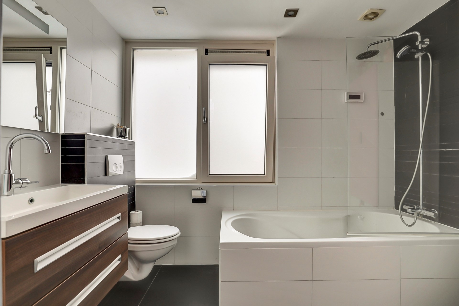 Geheel betegelde badkamer met vloerverwarming. Badkamer met ligbad voorzien van regen- en handdouche met thermostaatkraan en een 2e toilet en badkamermeubel met wasbak. Een heerlijke plek om even tot rust te komen.